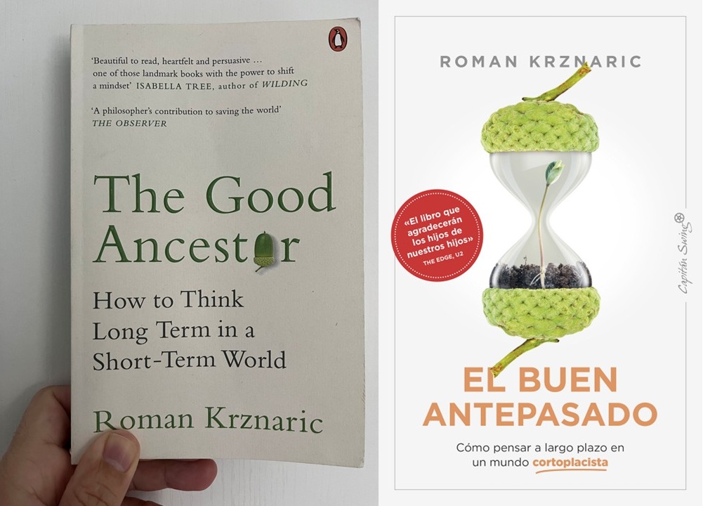 Fue una gran sorpresa cuando en 2023 llegó a mí el libro Roman Krznaric, “El buen antepasado: cómo pensar a largo plazo en un mundo a corto plazo”. Esta vez lo escuché. Aprovechando algunos de mis viajes en coche y paseos diarios, me acostumbré a utilizar plataformas de Audiolibros. Y aquel día de primavera de 2023 comencé con el del filósofo contemporáneo (Australia, 1971). Desde el primer momento de la lectura y hasta el final me atrapó en un concepto que había escuchado muchas veces, pero nunca antes alguien me lo había contado con tanto rigor atendiendo a una perspectiva holística de la sociedad en la que la geopolítica, la energía y el medio ambiente deben de ser siempre parte de dicha visión. Tanto fue que me gustó que al día siguiente de finalizar la lectura me lo compré en versión original y es la que luego he ido utilizado para revisar y marcar.